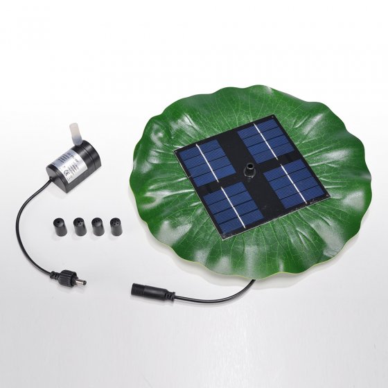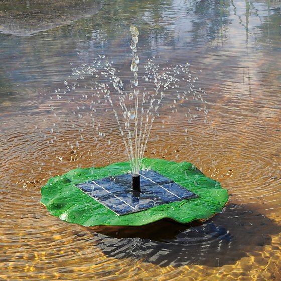 Geniet van het zachte spatten en verwonder u over de indrukwekkende waterfiguren: deze SOLARFONTEIN WATERLELIE maakt van uw tuinvijver een waar spektakel zonder dat u iets hoeft te installeren. Plaats de decoratieve waterlelie met solarmodule en pomp eenvoudig op het wateroppervlak en de zon doet de rest! De kleine motor (stroomsnelheid van 180 l/h) en de vier opzetstukken creëren fonteinen in verschillende vormen tot een hoogte van 50 cm – zonder gebruikskosten! U slaat twee vliegen in één klap, want het stromende water werkt ook als een vijverpomp en voorkomt dus rot en algenvorming. Afmetingen (Ø): ca. 28 cm. Verfraai u tuin met de hulp van kostenbesparende zonne-energie!
