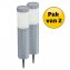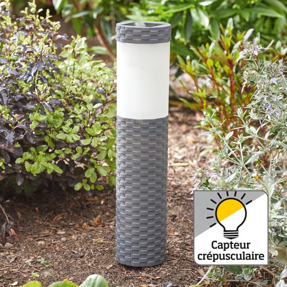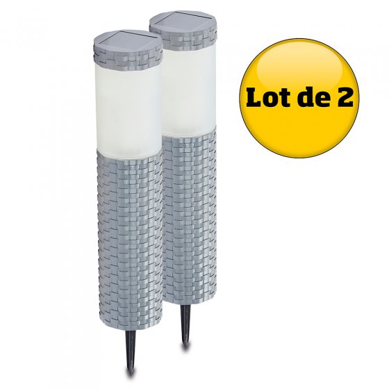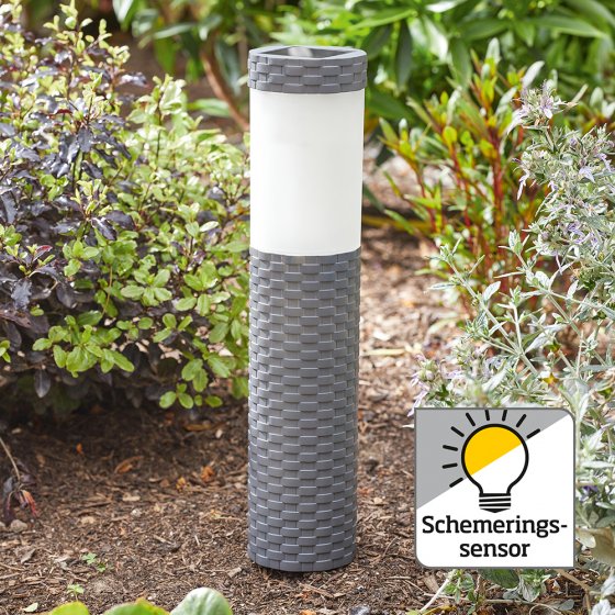 Verander uw tuin in een natuurtempel die 's avonds door flikkerende lichtbronnen zacht wordt verlicht. De SOLARLAMPEN MET VLAMEFFECT (set van 2) beginnen dynamisch te gloeien als de schemering valt, waarbij de matglazen afwerking van de lamp het laaiende vlameffect versterkt. Overdag fungeren de discrete antracietkleurige kolommen als moderne designelementen in trendy rotan-look. Een nauwelijks zichtbaar zonnepaneel op het kolomdak en een accu in de kolom zorgen voor de benodigde elektriciteit. Bevestiging met grondpen. Afmetingen per kolom: Ø ca. 8 cm, hoogte ca. 35 cm (zonder grondpen). Deze set van 2 is het helemaal – onderhoudsvriendelijk, weerbestendig en zonder gebruikskosten!