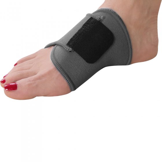 Soulage agréablement les pieds fortement sollicités : le soutien pour voûte plantaire vous protège avec une compression ciblée en cas de pieds plats et pieds creux, de surcharge du métatarse ou d’affections des orteils ou du dessous des pieds. Avec patte auto-agrippante réglable selon vos besoins. 1 paire. Taille (Long. x larg.) : 31 x 11 cm. Coloris : gris, noir. Matière : néoprène.