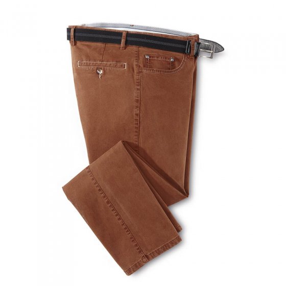 Deze SPORTIEVE KATOENEN BROEK is een echte aanwinst omdat hij zo veelzijdig is. Of je hem nu draagt bij outdooractiviteiten of in de stad: hij ziet er altijd casual en toch stijlvol uit en trekt op een positieve manier de aandacht. Reden daarvoor zijn de twee mooie kleuren waaruit gekozen kan worden, de moderne structuur van de stof en de stijlvolle contrastnaden. De broek van 98% katoen en 2% Elastan is ook heel comfortabel, want hij voelt heel zacht aan en beweegt door het lichte stretchaccent mooi mee. De broek in 5-pocketsmodel heeft achterzakken met een knoop en een veiligheidszak. Hij is zelfs voorzien van een riem.