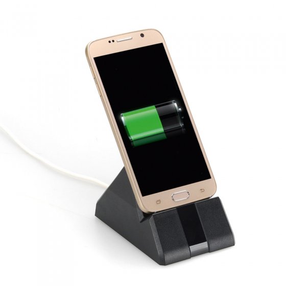 Vous avez encore oublié votre téléphone mobile dans le salon, dans l’entrée ou dans votre atelier de la cave ? Avec la STATION DE CHARGE POUR TÉLÉPHONE MOBILE, finies les longues heures de recherche : votre téléphone mobile a désormais une place fixe dans la maison ! Sur un élégant support, il se loge dans une coque en caoutchouc mousse sûre et antidérapante. Peu importe la marque de votre téléphone : les adaptateurs inclus vous permettent de raccorder votre propre câble de chargement à la station. Le câble se range à l’intérieur, puis vous pouvez placer votre mobile sur la station avec ou sans sa coque de protection et le brancher sur votre propre prise. Dim. : (L x l x H) env. 11 x 7 x 6 cm. Fini les recherches interminables de téléphone mobile ou de câble de chargement !