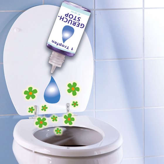 Versez simplement une goutte du stop-odeurs 1-goutte dans la cuvette du WC avant d’aller aux toilettes et une bonne odeur de menthe fraîche se répand immédiatement dans la salle de bain ou les toilettes. Empêche la formation d’odeurs désagréables. Contenance :18 ml.