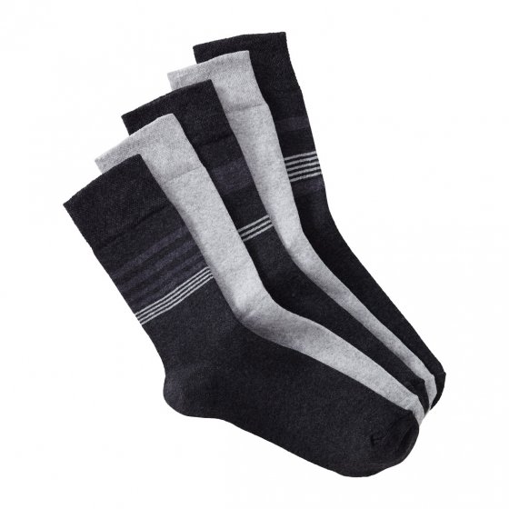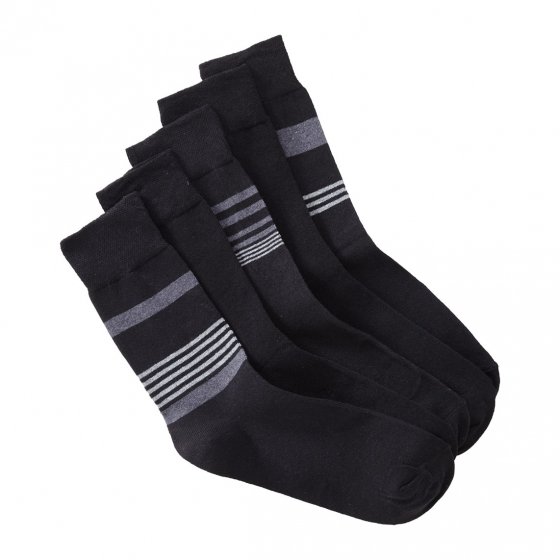 Deze STRETCH-COMFORTSOKKEN zijn niet voor niets zo gewild! Dankzij veel katoen voelen ze heerlijk zacht aan en laten ze de voeten ademen. Door een klein aandeel Elastan voegen de sokken zich mooi glad naar de voet en zitten ze optimaal. Extreem comfortabel is ook de boord, die bloedsomloopvriendelijk is verwerkt zonder elastiek. De tijdloze unikleuren en de streepdessins zijn gemakkelijk te combineren. De sokken zijn gemaakt van 70% katoen, 25% polyester en 5% Elastan en zijn te bestellen in set van 5 paar of in praktische set van 10 paar, zodat u nooit misgrijpt.