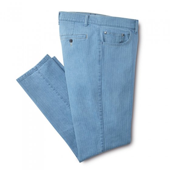 De STRUCTUURJEANS is perfect voor mannen die graag een jeans met iets bijzonders willen dat men niet overal ziet! Het hoogtepunt is de visgraatstructuur van de denimstof: deze geeft de jeans een sportieve en bijzondere look, is subtiel en valt toch op. Het draaggevoel is zo comfortabel als u van een echt goede jeans mag verwachten: de broek is gemaakt van 98% katoen en 2% elastan, is aangenaam rekbaar en vormvast. En ook de populaire comfortband is aanwezig! De swing pocket jeans heeft achterzakken met een knoop en een extra veiligheidsvak.