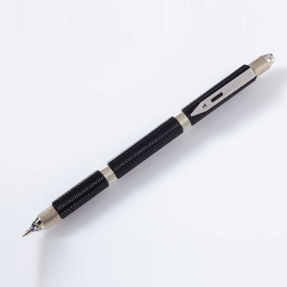 Ce stylo a vraiment tout ce qu’il faut ! À première vue il s’agit d’un stylo-bille ordinaire – mais quand on tourne le STYLO-OUTIL 11 EN 1 à l’un des 3 endroits prévus à cet effet, il libère tout une gamme d’accessoires utiles. Insérez l’outil désiré au bout du stylo et ce dernier est prêt à l’emploi. 11 embouts différents permettent de faire face à toutes les situations : resserrez les branches de vos lunettes avec le tournevis, coupez le fil électrique avec le dénudeur de câble, ou enlevez une écharde avec la pincette pratique. Et quand vous avez terminé, résolvez tranquillement une grille de mots croisés avec la mine de stylo. Longueur : env. 14 cm, Ø = env. 1 cm. Un stylo à tout faire !