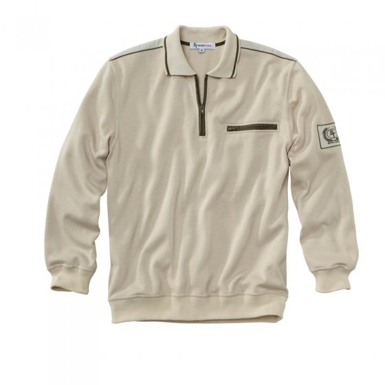 Comfort met stijl! Het heldere ontwerp behaagt al op het eerste gezicht. Het draagcomfort bevalt: super-zacht en 100% kriebelvrij op de huid, biedt deze SWEATER MET RITSSLUITING aangename warmte en comfort. De huidvriendelijke ademende katoen- jersey is aan de binnenkant geborsteld. Zo ontstaat een isolatielaag die lichaamswarmte opslaat en koude tegenhoudt. In beige/olijf of olijf/beige zijn beide combinatiesterk. Waarom niet de voordelige pakketprijs gebruiken om u zelf beide te gunnen? 65% katoen, 35% polyester, geschikt voor wasmachine, rits-polokraag, borstzakje en schouderinzetstukken met contrastbiezen, armstiksel, kraag, manchetten- en boordafsluiting in elastische rib boord.