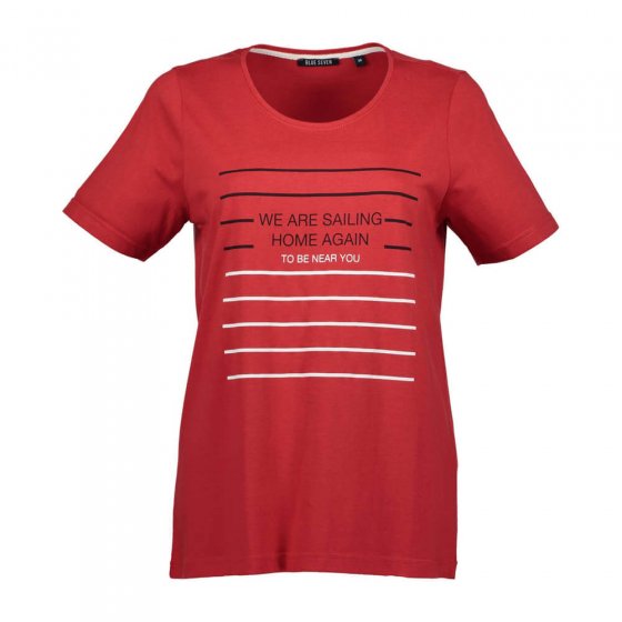 Avec un jean d’allure décontractée ou un tailleur élégant, en rouge dynamique ou bleu raffiné – le t-shirt femme à encolure ronde peut se combiner de nombreuses manières et fait toujours bel effet ! Ce modèle attrayant à manches courtes se distingue par son beau motif imprimé et une bande d’encolure de couleur contrastante. La coupe est confortable et le tissu à base de coton est doux et respirant. Matière : 50 % coton, 50 % modal.
