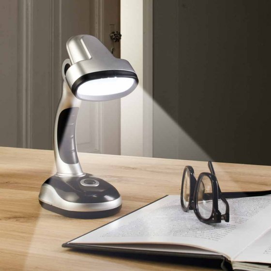 Licht, precies waar u het nodig hebt. De TAFELLAMP MET 12 LEDS combineert een handig design met praktische functionaliteit. Dankzij de draadloze werking op batterijen (3 x AA, afzonderlijk te bestellen) kan de lamp overal mee naartoe worden genomen en neergezet. Of het nu gaat om het lezen van de tv-gids, het oplossen van een kruiswoordpuzzel of knutselen. Nu kunt u altijd en overal het juiste licht hebben en dankzij de ledtechnologie energie besparen. Dankzij de draaibare lampkop kunt u de lichtbundel precies daar richten waar u hem het felst nodig hebt. Het compacte formaat van 20 x 11 x 8 cm (h x b x d) kan overal worden neergezet. Nu comfortabel licht in elke kamer.