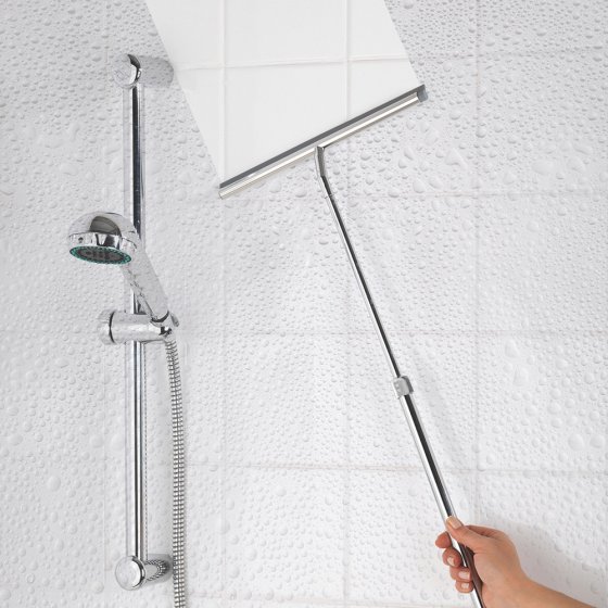 Als u niet wilt dat er na het douchen watervlekken achterblijven op de wanden van de douchecabine, moet u de wanden droogvegen. Deze telescopische douchewisser laat geen strepen of veegsporen na! Het handvat kan met 21 cm worden verlengd door het uit te trekken, zodat u gemakkelijk bij elke hoek kunt. Bovendien ligt de hoogwaardige wisser zeer goed in de hand. Met dubbel-rubberstrip. Afmetingen (l x b x d): ca. 37–59 x 26 x 3 cm.