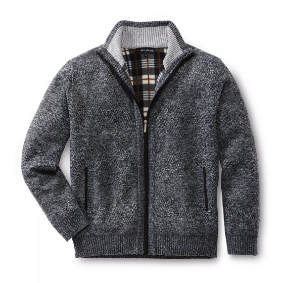 Aan de buitenkant zacht breisel, aan de binnenkant warme fleece