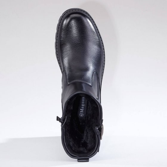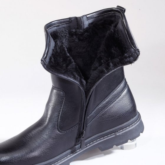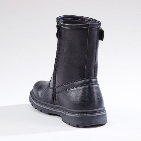 De THERMO-WINTERLAARZEN hebben een stoere en mannelijke look. En u zult genieten van de eigenschappen. Koude voeten zijn vanaf nu verleden tijd: daarvoor zorgt de zachte, warme voering van textiel. De ritssluiting opzij maakt de instap in de stevige laarzen heel comfortabel; de wijdte van de schacht is met de gesp verstelbaar. De loopzool van kunststof is doorgestikt, dus zeer robuust. Het stevige profiel heeft een goede grip op de ondergrond. En door het bovenwerk van polyurethaan is het mooie klassieke model ook nog heel gemakkelijk in onderhoud.