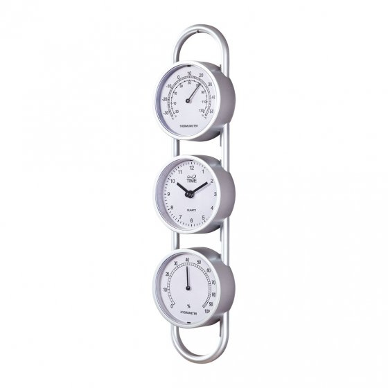 Un climat ambiant sain est essentiel pour votre santé ! Une humidité ambiante trop basse ou trop élevée peut causer des moisissures sur les murs, des irritations oculaires ou même des refroidissements. Le THERMOHYGROMÈTRE-HORLOGE ANALOGIQUE vous permet de contrôler à tout moment l'atmosphère ambiante et de réagir rapidement si l'air de la pièce est trop sec ou trop humide. Outre l'hygromètre qui permet d'assurer une humidité ambiante optimale, ce trio au design attrayant dispose également d'un thermomètre fiable pour indiquer la température de la pièce et d'une horloge bien lisible. Fonctionne avec 1 pile AA (vendue séparément). Longueur : 38 cm.