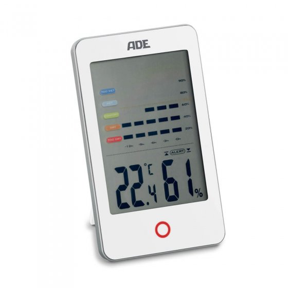 Trop d'humidité de l'air peut conduire à la formation de moisissures. Le thermomètre-/hygromètre avec alarme de moisissures va vous permettre de réagir rapidement : sur le grand écran d'affichage vous pourrez voir exactement si le climat ambiant actuel et dans les 12 dernières heures est ou était trop humide, humide, optimal, sec ou trop sec ! À poser ou à accrocher. Fonctionne sur 3 piles LR6, AA (incluses). Dimensions : (l x H x P) : 8,2 x 13,7 x 2,1 cm. Matière : ABS. Coloris : blanc.