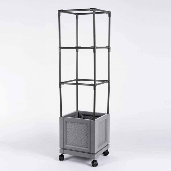 Cultiver les légumes n'est pas réservé aux jardiniers : la TOUR XXL À ROULETTES POUR PLANTES permet de cultiver des plantes grimpantes ou des arbres fruitiers en espalier sur le balcon – ou aussi sur la terrasse et même dans la maison ! Pour la déplacer, il suffit de la faire rouler. Le treillage est amovible et vous pouvez donc aussi utiliser seulement le pot de base pour y mettre des fleurs ou des herbes. Grâce aux panneaux latéraux double face, il est possible de changer l'aspect du pot (imitation bois ou rotin). Matière : plastique. Dimensions (H x l x P) : env. 110 x 30 x 30 cm. Devenez autosuffisant – même sans jardin !