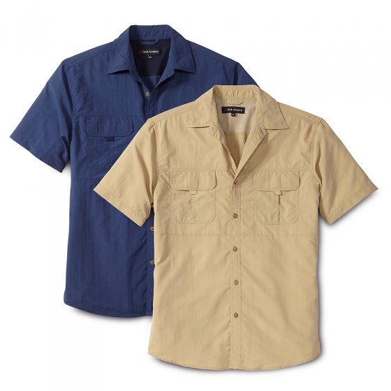 Ideaal voor buiten tijdens de zomer, of u nu op wandeltocht bent, op vakantie bent of een drankje doet met vrienden. Het TREKKINGOVERHEMD komt in lichte kleuren en is aangenaam licht in het dragen door het temperatuurregulerende materiaal van 100% polyamide. De pas achter is gemaakt van 100% polyester en zorgt voor een goede ventilatie. De sportieve kentkraag, korte mouwen en de afgeronde zoom maken de leuke outfit perfect! De beide borstzakken hebben een praktische klittenbandsluiting. Nu bijzonder voordelig als set.