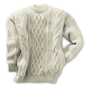 Test zelf, hoe gemakkelijk deze IERSE TRUIEN EN VESTEN van fantastische scheerwolkwaliteit zijn. Ze werden zijn volgens de traditionele, ambachtelijke methode van het eiland Aran zorgvuldig met de hand gemaakt. Bekijk eens het gevlochten patroon: elk heeft een bepaalde betekenis. Dit stelt een scheepstouw voor, dat de vissers geluk moet brengen. Zoom en manchetten in gebreide rib. Vest met 2 opgezette zakken en knopen in leeroptiek. Fantastische, warme, chique en makkelijke kledingstukken van 100% scheerwol “British wool”, waaraan u lang plezier zult beleven.