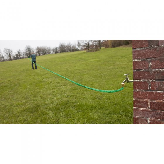 Oubliez tout ce que vous avez entendu sur le confort des tuyaux d'arrosage ! Notre TUYAU EXTENSIBLE X 3 impose en effet de nouveaux standards en matière de légèreté, de gain d'espace et de simplicité. Sous l'effet de la pression de l'eau, le revêtement intérieur en latex (Ø env. 6 mm) s'étend pour atteindre 3 fois sa longueur, soit 15 m. Une fois l'eau coupée, il reprend sa longueur initiale de 5 m pour gagner de l'espace et se ranger très facilement ! Ce système innovant est flexible, n'est pas sujet aux pliures et ne s'entortille pas sur lui-même. Livré avec des raccords en cuivre de qualité supérieure, convient pour toutes les arrivées d'eau classiques. Une puissance incroyable pour un poids plume (670 g). À essayer absolument : arroser votre jardin n'aura jamais été aussi facile !
