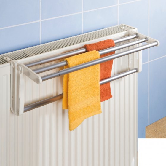 Een vochtige theedoek of een natte zwembroek hoeft niet direct op de grote waslijn in de kelder of op zolder te hangen! Deze UITTREKBARE RUIMTEBESPARENDE WASLIJN is heel gemakkelijk aan de verwarming, de deur of de wand te bevestigen. De droogstangen van robuust aluminium zijn met één handbeweging te vergroten van 58 tot 108 cm. Zo ontstaat er een totale drooglengte van wel 4,15 m, zonder onnodig ruimte te verspillen. En als alles droog is, klapt u de waslijn gewoon weer naar beneden. Snel en eenvoudig te monteren. Afmetingen (b x h x d): ca. 58–108 x 18 x 21 cm. Gewicht: ca. 650 g. De kleine lijn voor vele toepassingen!