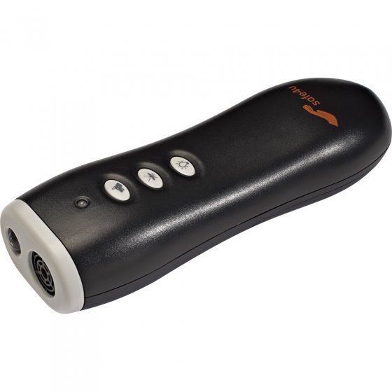 Niet iedere hondenbezitter lijnt zijn viervoetige vriend aan – en zelfs door aangelijnde honden kan men worden aangevallen. Verdedig u zelf met de ULTRASONIC-HOND-AFWEER: Met een druk op de knop creëert het een hoogfrequente pieptoon (voor mensen niet hoorbaar), gecombineerd met led-knipperlicht – dan gaan honden direct op afstand. Bovendien kan het apparaat een zoemtoon uitzenden die muggen op afstand houdt (’s-nachts ook continue), en in de donkere gangen is het een praktische mini-lamp. Past in iedere jaszak! Werkt op 9V-blokbatterij (afzonderlijk te bestellen). Afm. (l x b x h): ca. 14 x 4 x 3 cm. Wees geen “gemakkelijke prooi”!