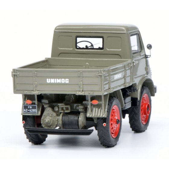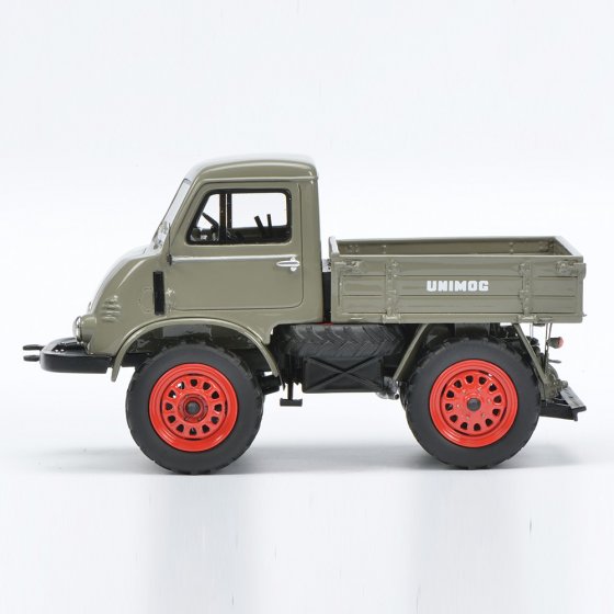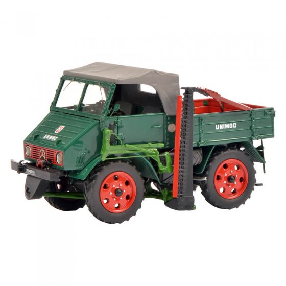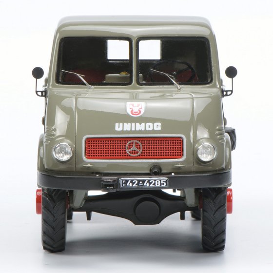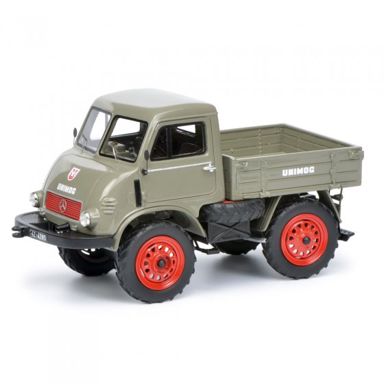 Met de Unimog (de naam is een acroniem van het Duitse ’Universal-Motorgerät’) creëerde de firma Erhard & Söhne na de oorlog een achte alleskunner op vier wielen. In 1950 nam Mercedes-Benz de productie over. De UNIMOG 2010 was de eerste Mercedes-Unimog, in 1953 opgevolgd door de UNIMOG U401. Beide voertuigen zijn nu verkrijgbaar in een gelimiteerde oplage als 1:32-model. Terwijl de 2010 (met afneembaar dak) met zijn hoekige motorkap er nog uitziet als een landbouwvoertuig, ziet de U401 met Westfalia-cabine en grote koplampen eruit als een kleine vrachtwagen. Afmetingen (l x b x h): elk ca. 11 x 6 x 7 cm. Materiaal: resine (PRO.R32). Haal ook deze gedetailleerd uitgevoerde verzamelmodellen in huis.