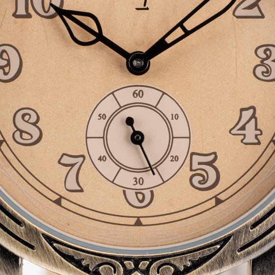 Het polshorloge ‘nostalgie’ is geïnspireerd door art deco en zal u bekoren met zijn elegante vintagelook: op de extravagante wijzerplaat met sierlijke ornamenten lopen gestileerde wijzers langs grote Arabische cijfers. Een slim geïntegreerde tweede wijzerplaat geeft de seconden precies aan!