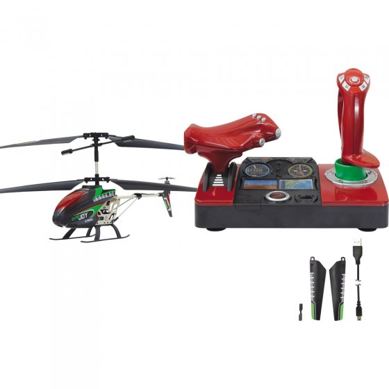 - meegeleverd: helikopter met accu, cockpit met laadapparaat, USB-oplaadkabel, reserverotorbladen, reserverotorblad achterzijde, handleiding