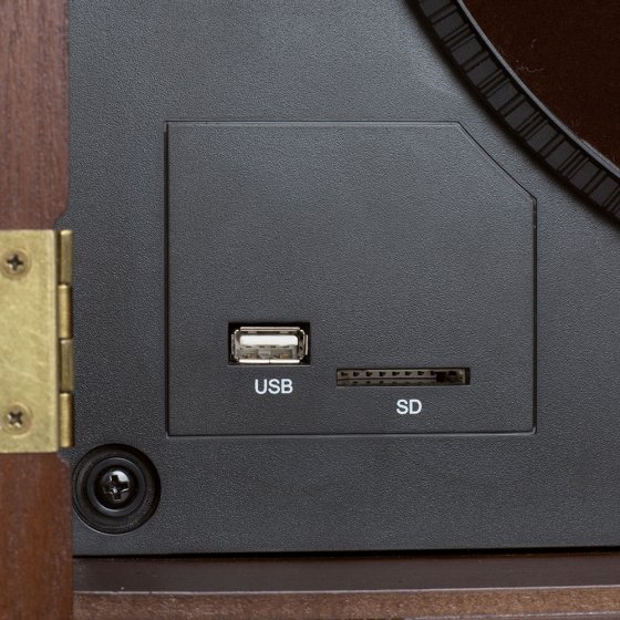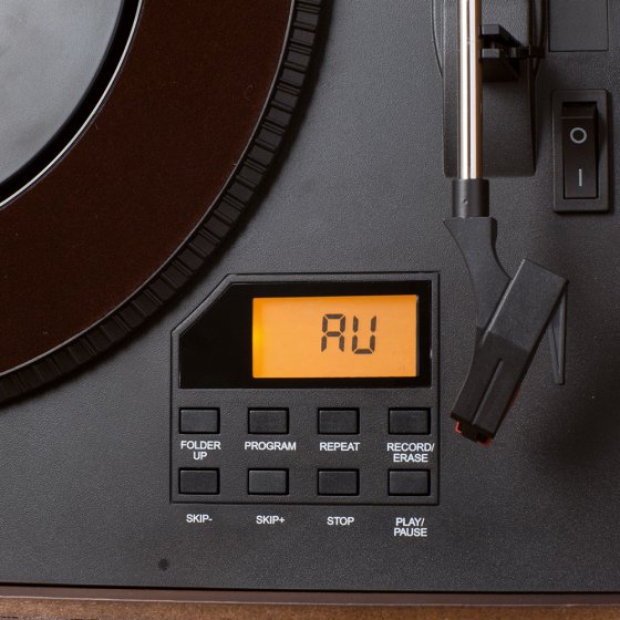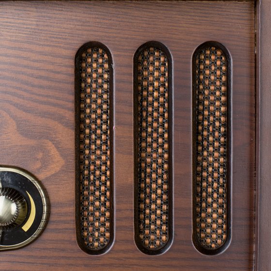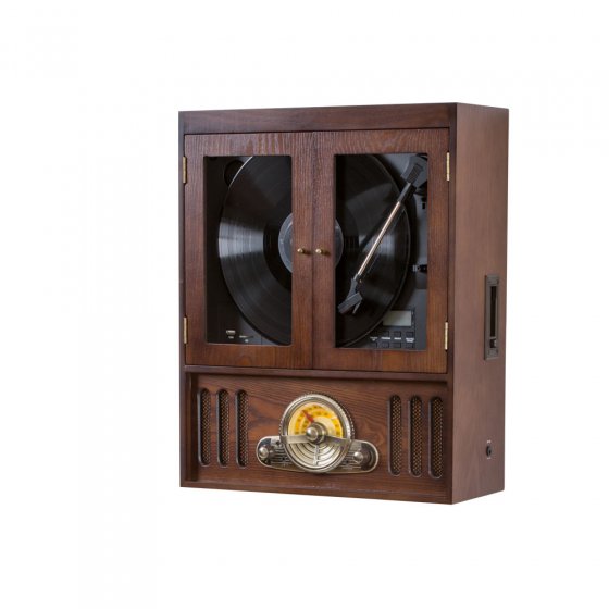 - Platenspeler met 3 snelheden, cd-speler (CD-R, CD-RW, CD-MP3), opzij geplaatst cassettedeck, FM-/AM-radio