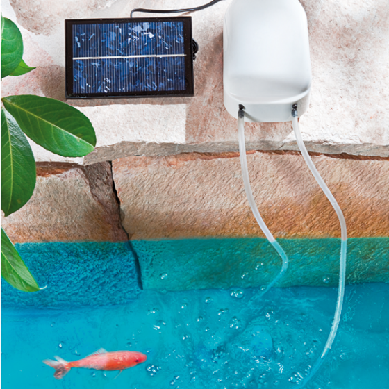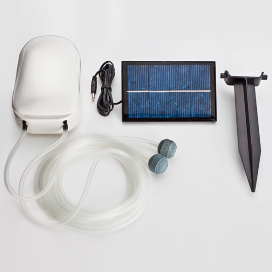 Vooral op warme, zonnige dagen, is daalt het zuurstofgehalte in uw vijver en wordt het water troebel - vaak met fatale gevolgen voor planten en vissen! Tref nu met deze VIJVER BELUCHTER OP ZONNE-ENERGIE voorzorgsmaatregelen! Hij kan veel doen om algengroei te beperken, door het biologische evenwicht van uw vijver en zijn bewoners te onderhouden met verse zuurstof. En dit is te danken aan de nieuwste zonnetechnologie op een milieuvriendelijke manier en zonder enige kosten! U heeft geen elektriciteit nodig: Installeer de luchtpomp, de twee buizen (2 m lang), met de luchtbel in het water doen en kies een zonnige plaats voor de hoge kwaliteit zonnepaneel met multifunctionele aardspies (3 m kabel lengte). Zodra de zon schijnt, gaat de luchtpomp aan en pompt gelijk zuurstof in uw vijver. (volume van de lucht 180 l / uur). Voor kleine en middelgrote vijvers (3000 L) geschikt. Geef uw vijver en vijver bewoners lucht – ze zullen u dankbaar zijn!
