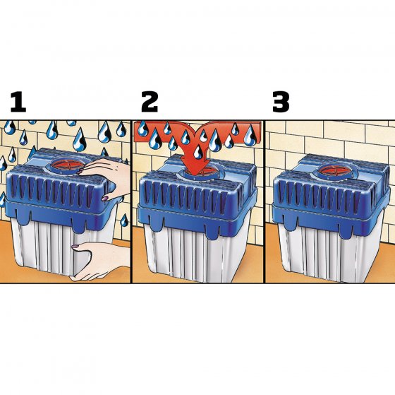 Kelder, tuinhuisje of garage – de VOCHT-KILLER houdt elke ruimte droog! Het milieubewuste, in laboratoria geteste systeem beschermt muren, meubelen, auto en textiel effectief tegen vocht, schimmel en onaangename geurtjes. Eenvoudige bediening: het granulaat trekt vocht aan en geeft het als vloeistof af in de opvangbak. Giet de bak af en toe leeg – meer hoeft u niet te doen! 2 kg-set (ca. 23 x 16 x 24 cm, opvangbak 4,7 l) voor ca. 4–6 maanden en vertrekken tot 50 m2. 5 kg-set (ca. 29 x 24 x 29 cm, opvangbak 8 l) voor maximaal 12 maanden en vertrekken tot 100 m2. Test nu het directe effect!