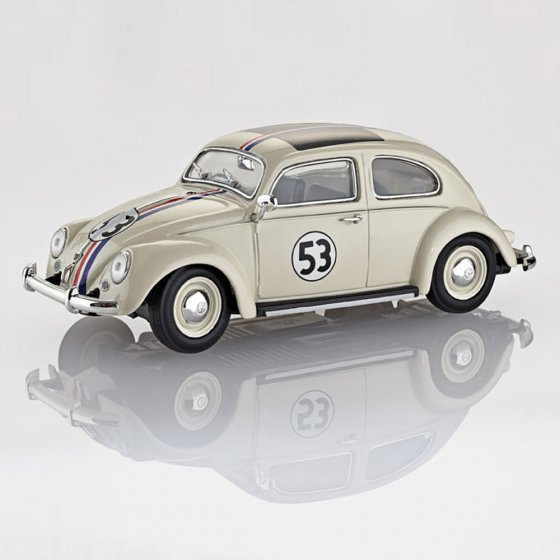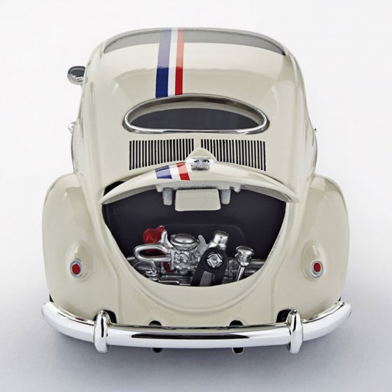 La Coccinelle est à aujourd’hui la voiture la plus exportée et la plus célèbre de Volkswagen. Walt Disney lui rendit hommage dans de nombreux films de cinéma : la COCCINELLE "HERBIE" blanche, en réalité gris clair, du film "Herbie" a enthousiasmé le public par ses capacités extraordinaires et sa personnalité hors du commun. Ce modèle-réduit DieCast à l’échelle 1:32 est laqué comme la voiture du film, doté d’un numéro et de bandes colorées. Les roues avant tournent et le capot s’ouvre. Matière : zinc moulé sous pression et pièces en plastique. Dim. (L x l x h) : env. 13 x 5 x 5 cm. Ne manquez pas ce modèle-réduit de la Coccinelle !