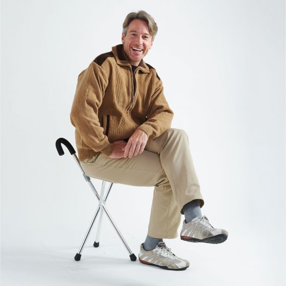 Met deze lichtgewicht wandelstok met zitje kunt u niet alleen lopen, maar ook zitten! Het opklapbare zitje vergrendelt automatisch wanneer deze wordt opgezet. Ideaal voor een pauze onderweg. Materiaal: aluminium. Kleur: grijs/chroom. Afmetingen: zithoogte: ca. 55 cm, hoogte stok: 84 cm.