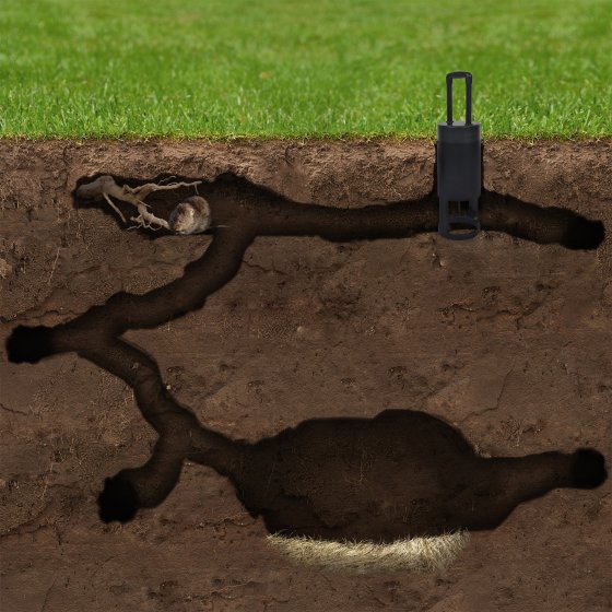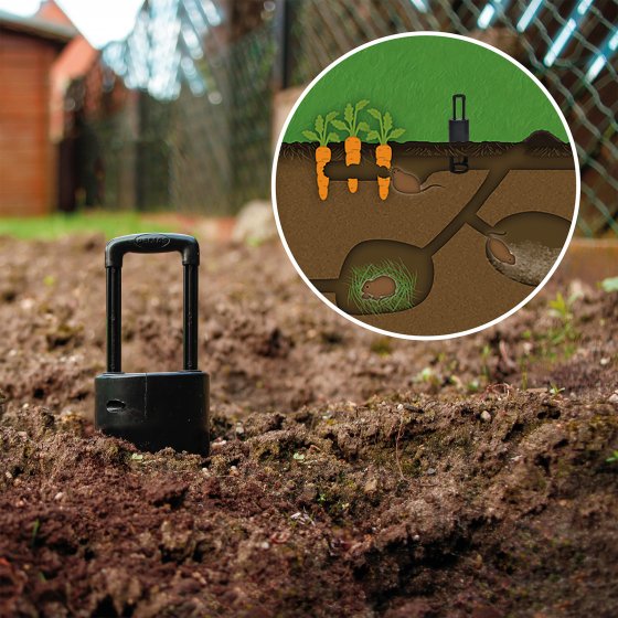 Onderaardse 'bezoekers' zijn een kwelling voor elke tuinman. Professioneel bestrijden is meestal niet alleen noodzakelijk, maar ook duur en soms zelfs milieuvervuilend. De WOELMUISVAL lost al deze problemen betrouwbaar op. Steek hem gewoon in de woelmuistunnel, span de val en klaar bent u. U hoeft niet te graven. Zodra de steeds opnieuw te gebruiken val dichtklapt, kunt u dit direct zien aan het handvat, dat nu veel dieper zit. Materiaal: weerbestendige kunststof. Afmetingen (Ø x h): ca. 6 x 18 cm. Gewicht: ca. 130 g. Geniet eindelijk weer van een net en vlak gazon.