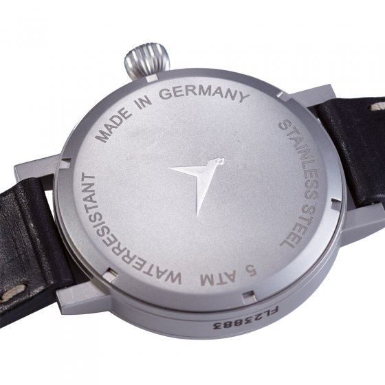 Het PILOTENHORLOGE „BAUMUSTER A“ werd tijdens de Tweede Wereldoorlog door de piloten van de Duitse Luftwaffe over de mouw van hun jasje gedragen. Het diende aan de strengste eisen te voldoen die destijds door het Ministerie voor Rijksluchtvaart werden opgelegd aan de verschillende fabrikanten. Elk horloge kreeg de opdruk„FL 23883“, een bewijs dat het horloge een navigatieapparaat was. Als hoogwaardig „made in Germany“-product wordt dit legendarische horloge vandaag in de ateliers van ARISTO VOLLMER GmbH in Pforzheim exclusief voor EUROtops met de hand gemonteerd. De horloges bevatten een Zwitsers precisiekwartsuurwerk (Ronda 515). Hierdoor zal de tijd niet meer dan één seconde per dag afwijken! Dankzij de secondestop kan het horloge, net zoals in 1940, tot op de seconde juist worden gezet. De cijfers, wijzers en indexen zijn voorzien van een laag Super-luminova en blijven daarom tot ca. 5 uur oplichten. Zoals ook het geval was voor het historische voorbeeld, worden er op de wijzerplaat van dit horloge geen merken afgebeeld. Afmetingen: Ø ca. 55 mm, behuizing van ca. 17 mm dik. Een goed alternatief voor het origineel dat vandaag de dag talloze euro’s meer kost!