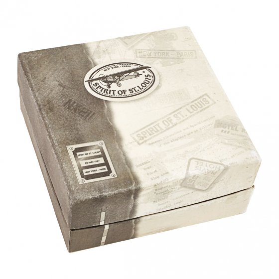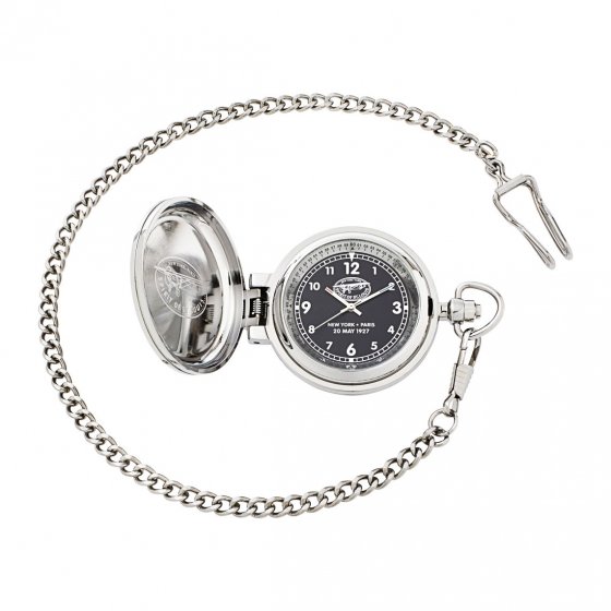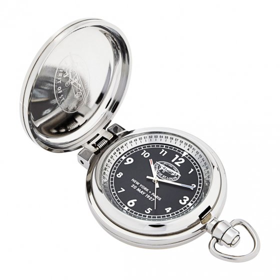 Het verhaal achter het zakhorloge ’SPIRIT OF ST. LOUIS’ vormt een mijlpaal in de luchtvaart-geschiedenis: Charles Lindbergh volbracht in mei 1927 met het gelijknamige vliegtuig de eerste nonstop-solovlucht over de Atlantische Oceaan van New York naar Parijs. Naar aanleiding van het 90-jarige jubileum van deze recordprestatie werd het horloge van verchroomd messing uitgebracht. Dekselgravures van binnen en van buiten en een kastgravure herinneren aan het vliegtuig, het vliegtraject en de vluchtdatum. Het horloge wordt door een hoogwaardig SEIKO-kwartsuurwerk aangedreven. Afm.: Ø ca. 45 mm, kastdikte ca. 13 mm. Met horlogeketting (36 cm). Voor vliegtuigliefhebbers en luchtvaart-geïnteresseerden is dit horloge een must!
