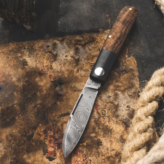 Tot op de dag van vandaag wordt de 'Tirpitz' beschouwd als het grootste slagschip dat ooit in Europa is voltooid. Het was zelfs zwaarder dan haar zusterschip 'Bismarck'. Sinds het einde van de oorlog worden uit de overblijfselen van de in 1944 gezonken staalreus gereedschappen en messen van hoge kwaliteit gemaakt. Een van deze messen is het ZAKMES 'TIRPITZ DAMAST'. Het met de hand gesmede lemmet is gemaakt van 200 lagen Tirpitz-scheepsstaal, het handvat van de vezelkunststof Micarta. De handvatschalen zijn gemaakt van fijn walnotenhout. Totale lengte (uitgevouwen): ca. 15 cm. Lengte van het lemmet: ca. 7 cm. Dit mes is niet alleen een hoogwaardig snij-instrument, maar het is ook een hoogtepunt in elke messencollectie!