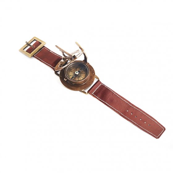 Natuurlijk zijn GPS-apparaten een handige, moderne uitvinding, maar ze zijn gewoon niet zo fascinerend als de navigatie-apparaten van onze voorouders! De ZONNEWIJZER MET KOMPAS toont op nostalgische wijze hoe de tijd werd bepaald. Als u de schaduwwijzer, genaamd Gnomon, omhoogklapt, valt er een schaduw van het zonlicht op de ring met Romeinse cijfers! Geraffineerd: als u de zonnewijzer omhoogklapt, laat het daaronderliggende kompas meteen de windrichting zien. Dankzij de armband kan dit authentieke item zelfs worden gedragen! Afmetingen (ØxH): ca. 6,5x1,5 cm. Een echt collector’s item, niet alleen voor zeevaartfans.