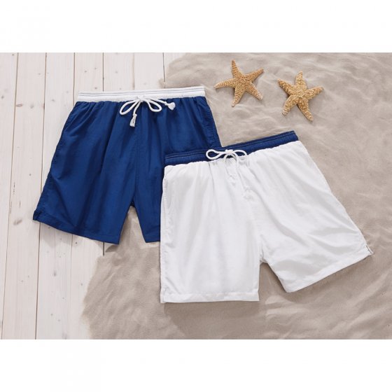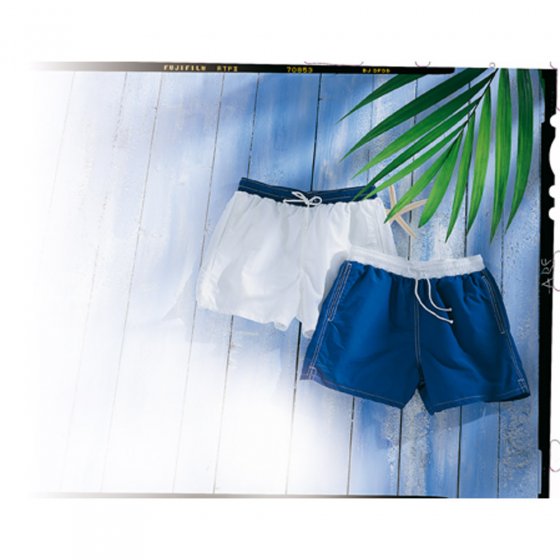 Laat u zich niet meer het plezier bederven door een zwembroek, die uren nodig heeft om te drogen, die op de huid plakt en ’s avonds, als u het strand verlaat, nog steeds vochtig is! Deze ZWEM-SHORTS van 100% polyamide zijn waterafwijzend en in een handomdraai droog. Ze zijn aangenaam om te dragen en super comfortabel, of u ze nu aantrekt om te baden of voor een strandwandeling. Prima afwerking: binnenslip, 2 zijzakken, 1 achterzak met klepje en klittenbandsluiting, elastische tailleband met tunnelkoord. Levering per 2 stuks, kleuren assorti. Bestel vandaag nog en... profiteer van de speciale prijs die alleen voor Eurotops-klanten geldt.